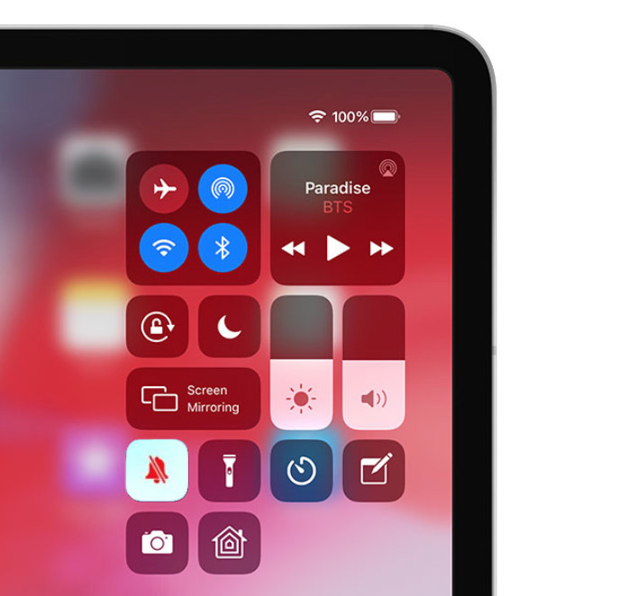 Open the control center by swiping up from the bottom edge of any screen. On iPhone X or later or iPad with iOS 12 or later, swipe down from the upper-right corner of the screen | ![]() |